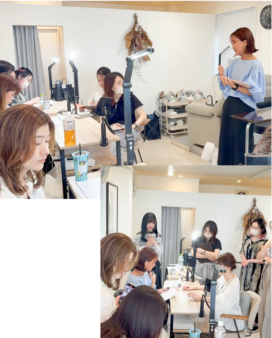 | 具体的な内容 自爪育成を始めていきたい方へ ・メニュー作り ・カウンセリング方法 ・技術のレクチャー(ケア育成・ジェル育成・スカルプ育成) ・集客方法についてお伝えします |